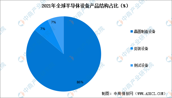 从细分产品结构来看,全球半导体设备市场中,晶圆制造设备市场规模占比超过85%,其中光刻机、刻蚀机、薄膜沉积设备等主要核心设备,市场占比均在20%以上。此外,测试设备和封装设备的市场占比均在7%左右。